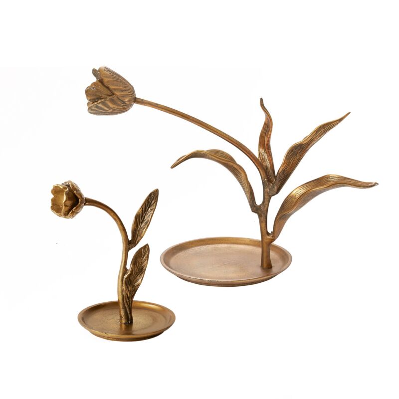 The nuances of Spring's favorite blooms are captured in the Craning Tulip Sculpture, a cast aluminum decorative object with a flat base for a candle or bed of moss. It's versatility makes it a special addition to our Easter collection
